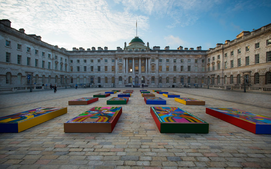 In 2016, artist Zak Ové paid tribute to African and Trinidadian identities which have been given new meanings through the cross cultural dispersion of ideas through his installation The Invisible Man. For 1-54, Ové created a courtyard installation that positions a time travelling army of masked Invisible men within the grand surroundings and historical heritage of Somerset House. The installation comments on the relationship between power, beauty, identity and skin colour — a dynamic epitomized by the Masque of Blackness enacted by Anne of Denmark and her court ladies in 1605 to the disdain of James I.