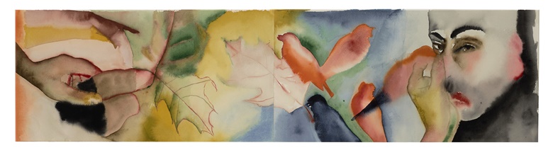 Francesco Clemente (b. 1952), Watercolour in Two Steps, 1983. Watercolour on two joined sheets of paper. Image: 10¼ x 36½ in (26 x 92.5 cm), Sheet: 14 x 40 in (35.5 x 101.6 cm). From Francesco Clemente: From the Collection of Thomas and Doris Ammann. © Francesco Clemente