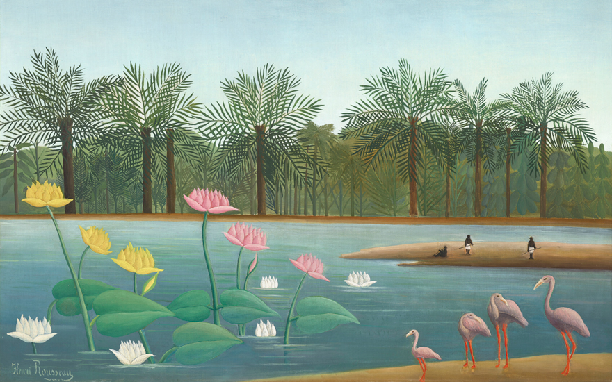 Part of a rare series of paintings, Les Flamants presents a unique opportunity for collectors
